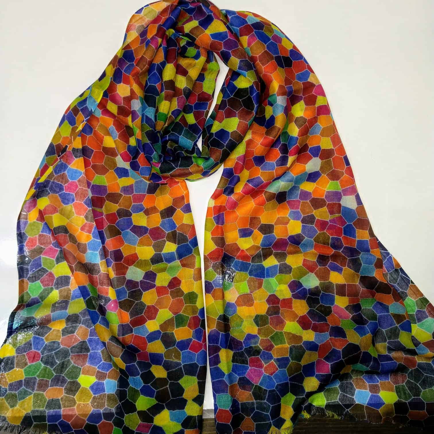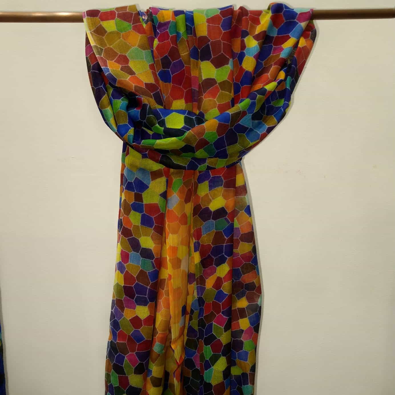 Beautiful orange hectagon natural wool scarf/shawl super lightweight